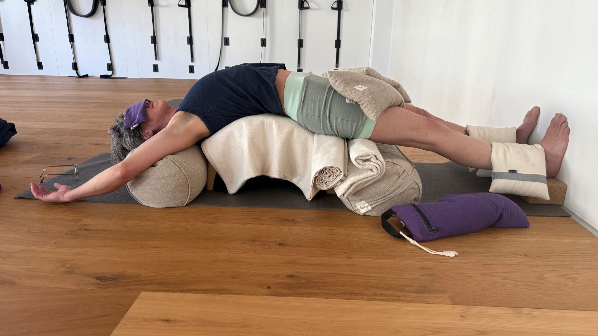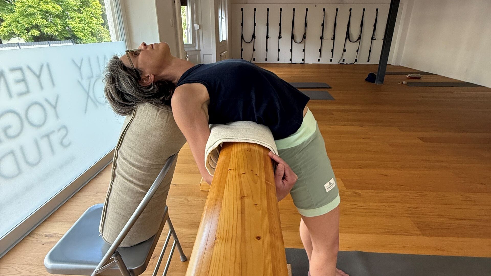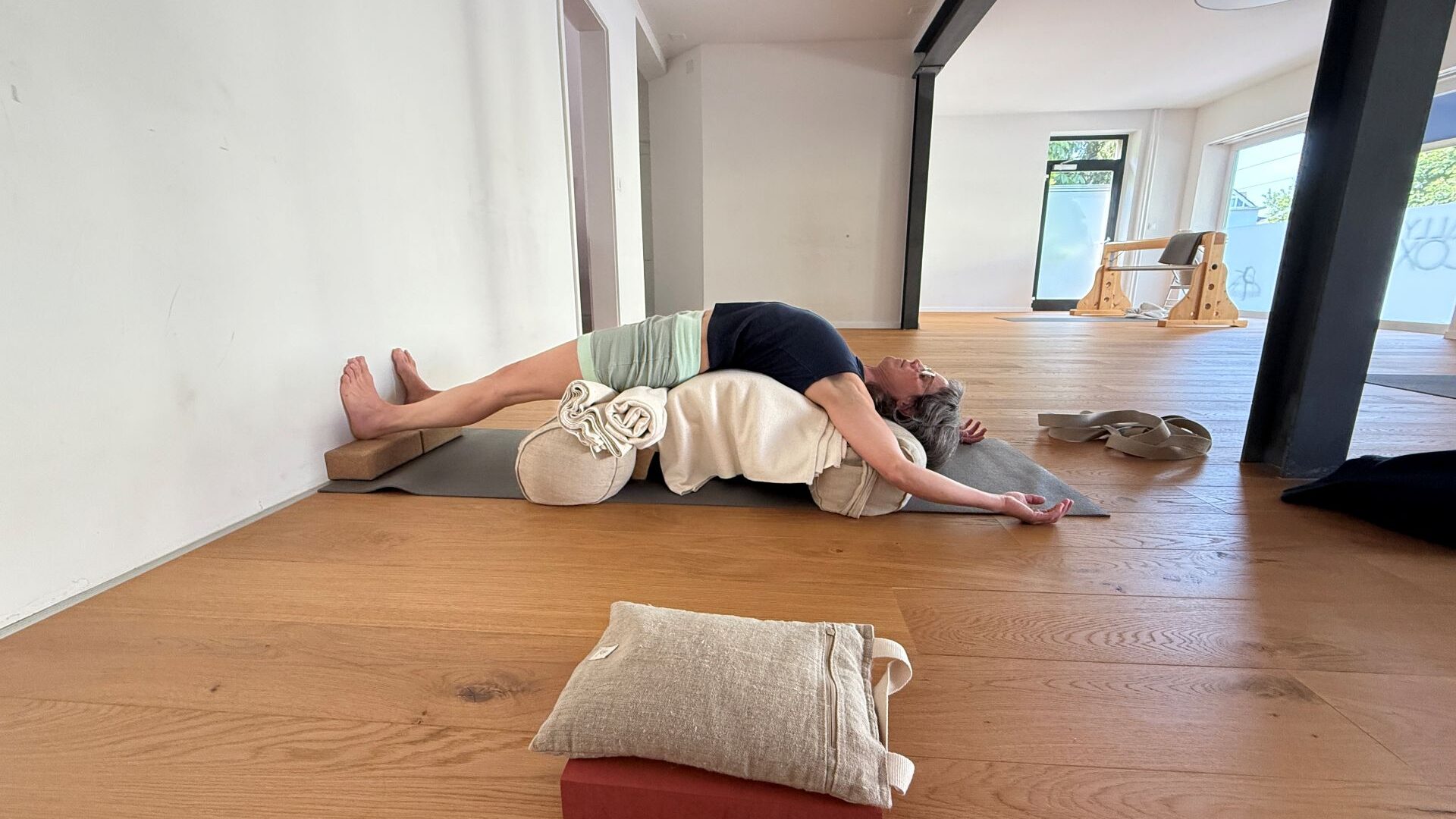 In diesem Yoga Therapie Kurs wird eine therapeutische Yogasequenz unterrichtet, deren modifzierte Yogahaltungen den Rücken entspannen, begleitet durch bewusste Atemwahrnehmung/- Lenkung, um den Rücken / die Wirbelsäule zu moblisieren und zu kräftigen.